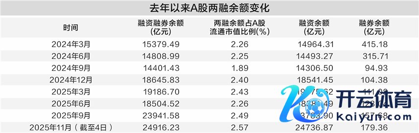 11月4日,A股两融余额占畅通市值的比例达2.57%,至此已麇集19个往异日督察在2.5%以上。收尾当日,A股两融余额约为24916亿元。
