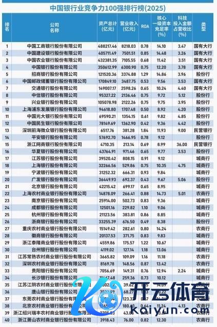 其中,“限制100强”聚焦总钞票、总欠债、贷款与进款等中枢限制主义;“盈利100强”重心响应营业收入、净息差、ROA、ROE等盈利智力;而本年的“成长性100强”则在原有基础上引入营收增速、中枢一级本钱足够率、成本收入比以及科技干涉过甚占比等维度,起劲从业务膨胀、本钱实力、运营成果与将来后劲等方面,更立体地呈现银行的发展能源。