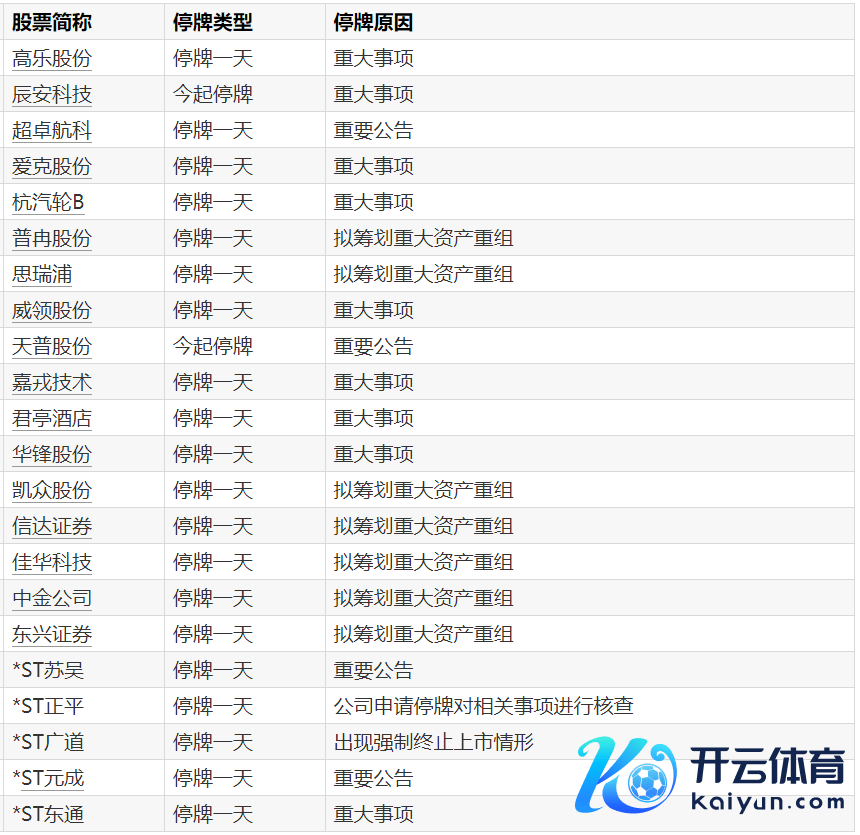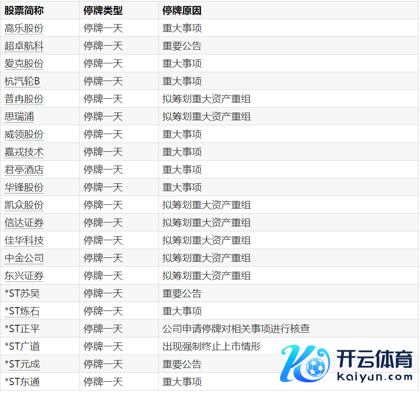 A股停牌指示:20股当天停牌开云官网切尔西赞助商A股停牌指示:20股当天停牌