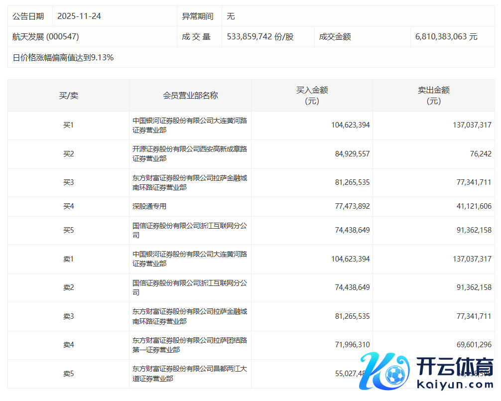 航天发展当天涨10.00% 陈小群席位买入1.05亿元卖出1.37亿元航天发展当天涨10.00% 陈小群席位买入1.05亿元卖出1.37亿元