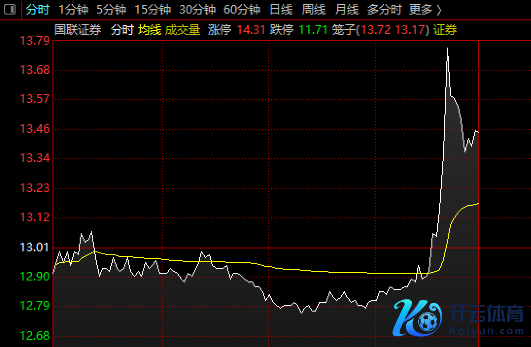 周二早盘,国联证券(601456)盘中异动,据金融界App数据走漏,限度发稿,国联证券拉升6%,股价报13.79元。