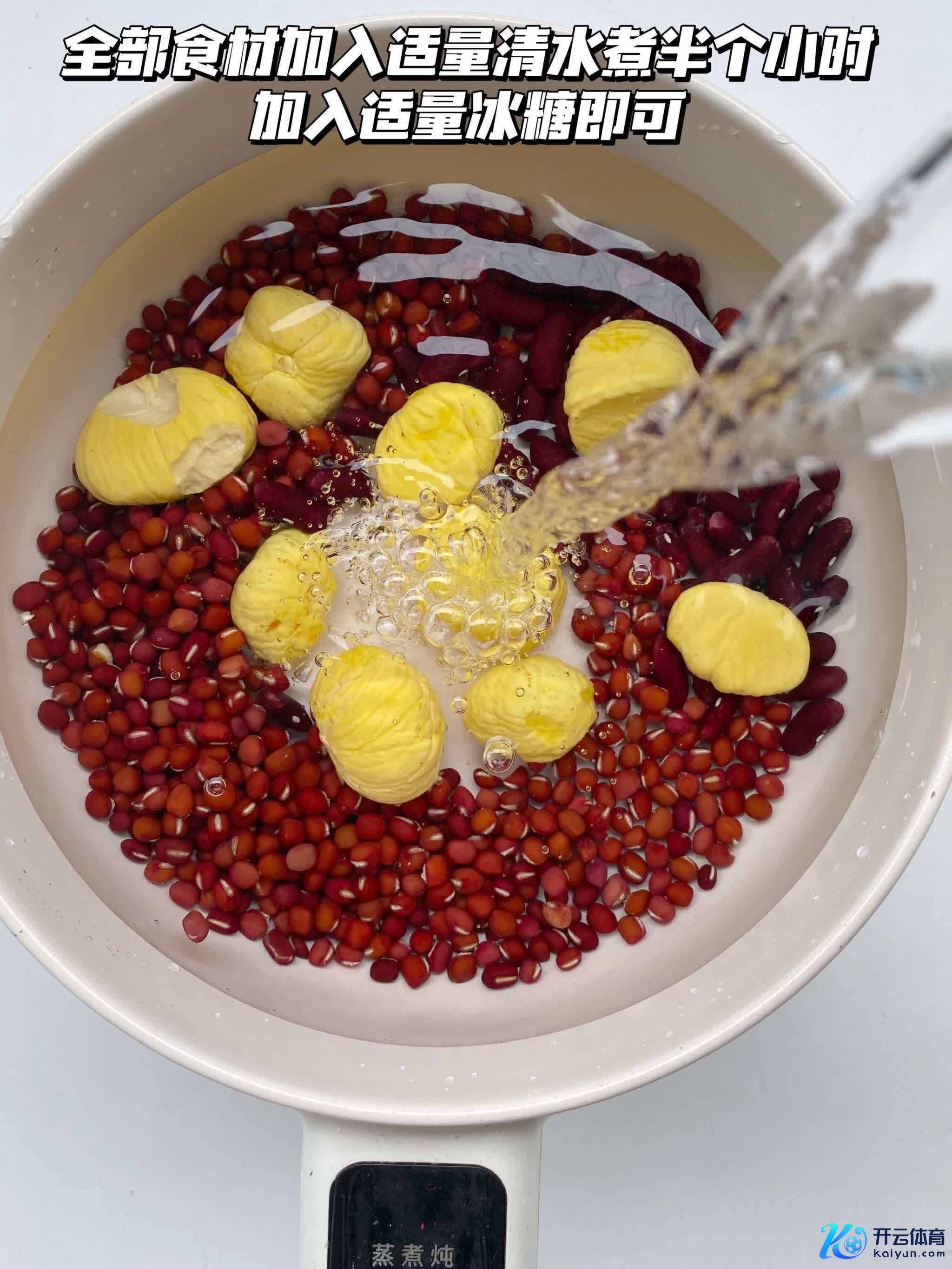 1. 红豆提前用净水浸泡4小时,放入锅中加足量水,大火煮开后转小火煮30分钟,至红豆软烂,加冰糖调味后捞出备用。