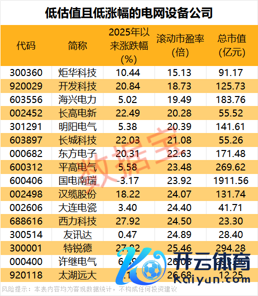 低估值且低涨幅的电网开导公司出炉低估值且低涨幅的电网开导公司出炉
