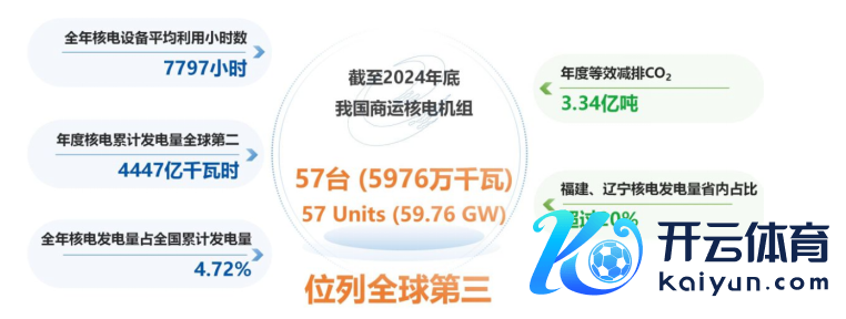 凭据中国核能行业协会《中国核能发展诠释(2025)》蓝皮书(以下简称“蓝皮书”),收尾2024年底,我国商运核电机组共57台,总装机容量达5976万千瓦,位居世界第三位,仅次于好意思国和法国。核电发电量保持巩固增长,2024年达4447亿千瓦时,位居世界第二位,占宇宙总发电量的4.72%,低碳减排效益权贵。