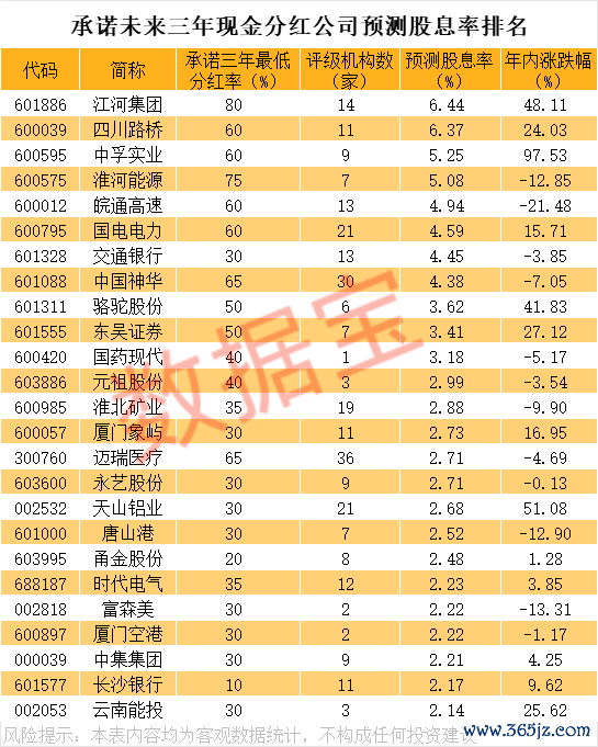 17 09-19 07:58曩昔三年现款分成公司展望股息率名次
