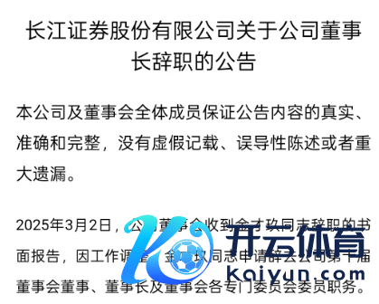 3月2日,长江证券发布公告称,因责任救助,金才玖肯求辞去公司第十届董事会董事、董事长及董事会各故意委员会委员职务。离职后将不再担任公司任何职务。
