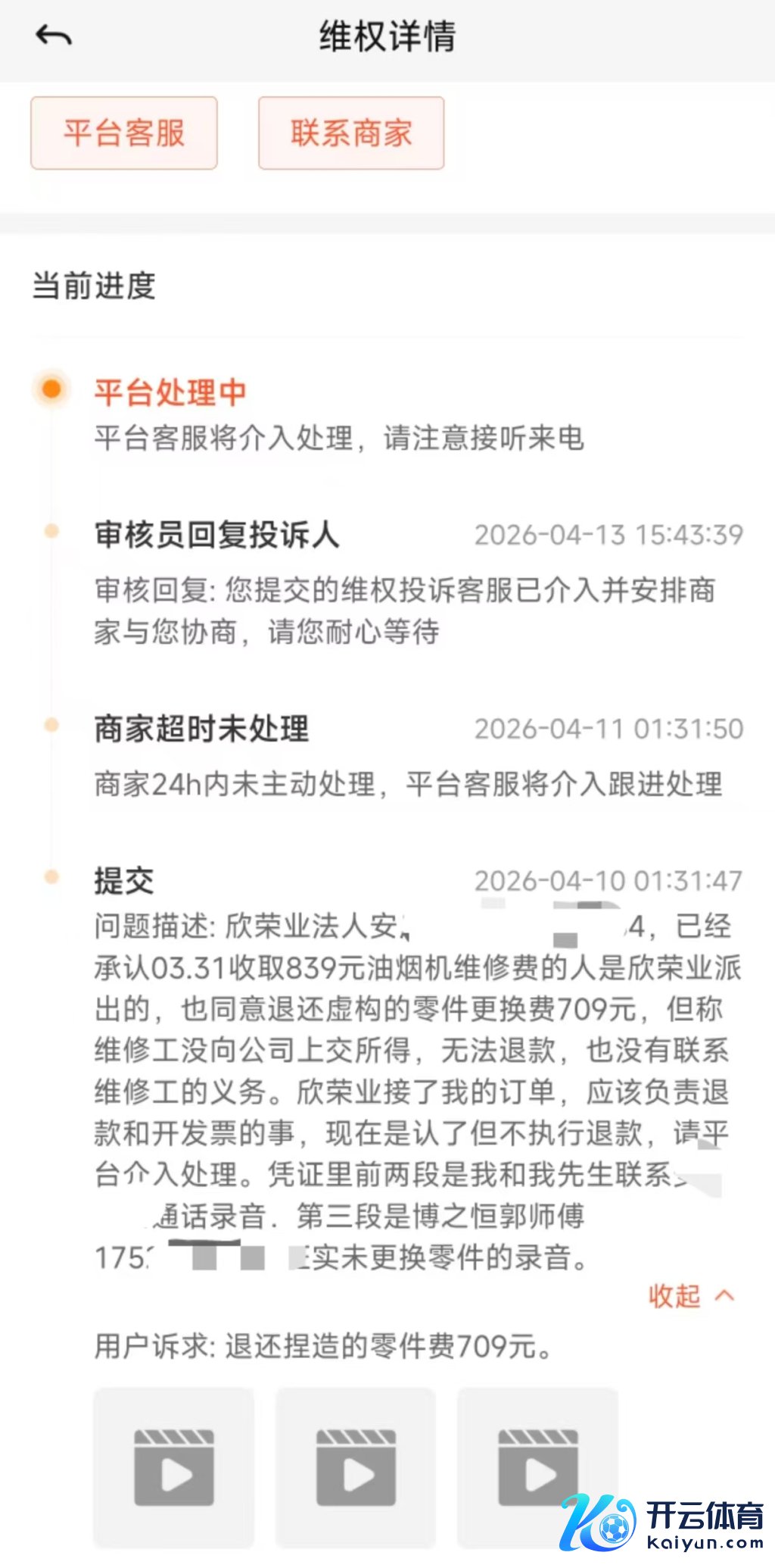 在平台上的“维权投诉中心”,却找到了另外一个订单。受访者提供