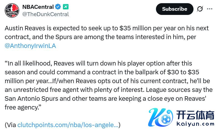 笔据湖东说念主记者Anthony F. Irwin报说念,湖东说念主队里夫斯想象在25-26赛季领域后跳出现存条约试水解放市集,寻求一份均薪3000-3500万年薪的大条约。