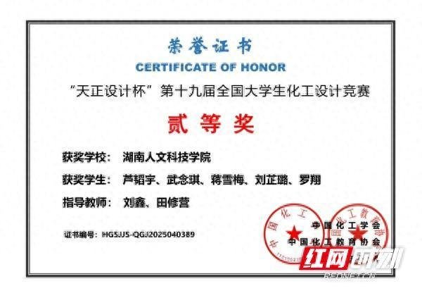 红网技能新闻9月10日讯(通信员 刘鑫 )近日,从 2025 年第十五届湖南省大学生化学化工学科(化工假想)竞赛、“宏达威杯” 2025 年华南地区大学生化工假想大赛暨第十九届寰宇大学生化工假想竞赛华南赛区决赛传来喜讯:湖南东谈主文科技学院选送的 4 支队伍弘扬优异,先后获湖南省一等奖 1 项、三等奖 2 项,华南赛区一等奖 1 项、三等奖 1 项,寰宇二等奖 1 项。 其中,该校遴派的“清砜徐来”队(队员:芦韬宇等,辅导教师:刘鑫、田修营)先勇夺湖南省一等奖,告捷晋级华南赛区决赛;经专项评审